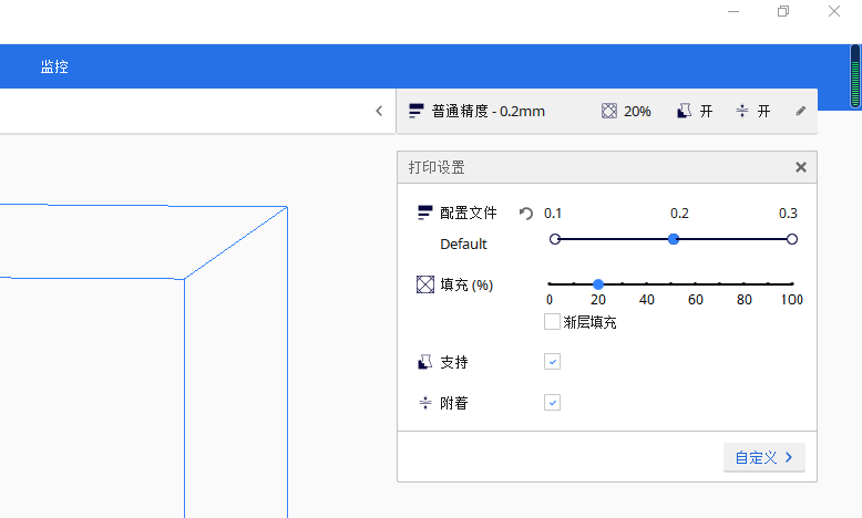 基于Marlin代碼重做了切片計算邏輯,降低切片的失誤可能性,提高了模型打印的表現(xiàn)。取消了支撐頂部隨模型支撐接觸面形狀進行變化,提高支撐易拆取性,同時也需要提高密度來獲得好的接觸面效果。
