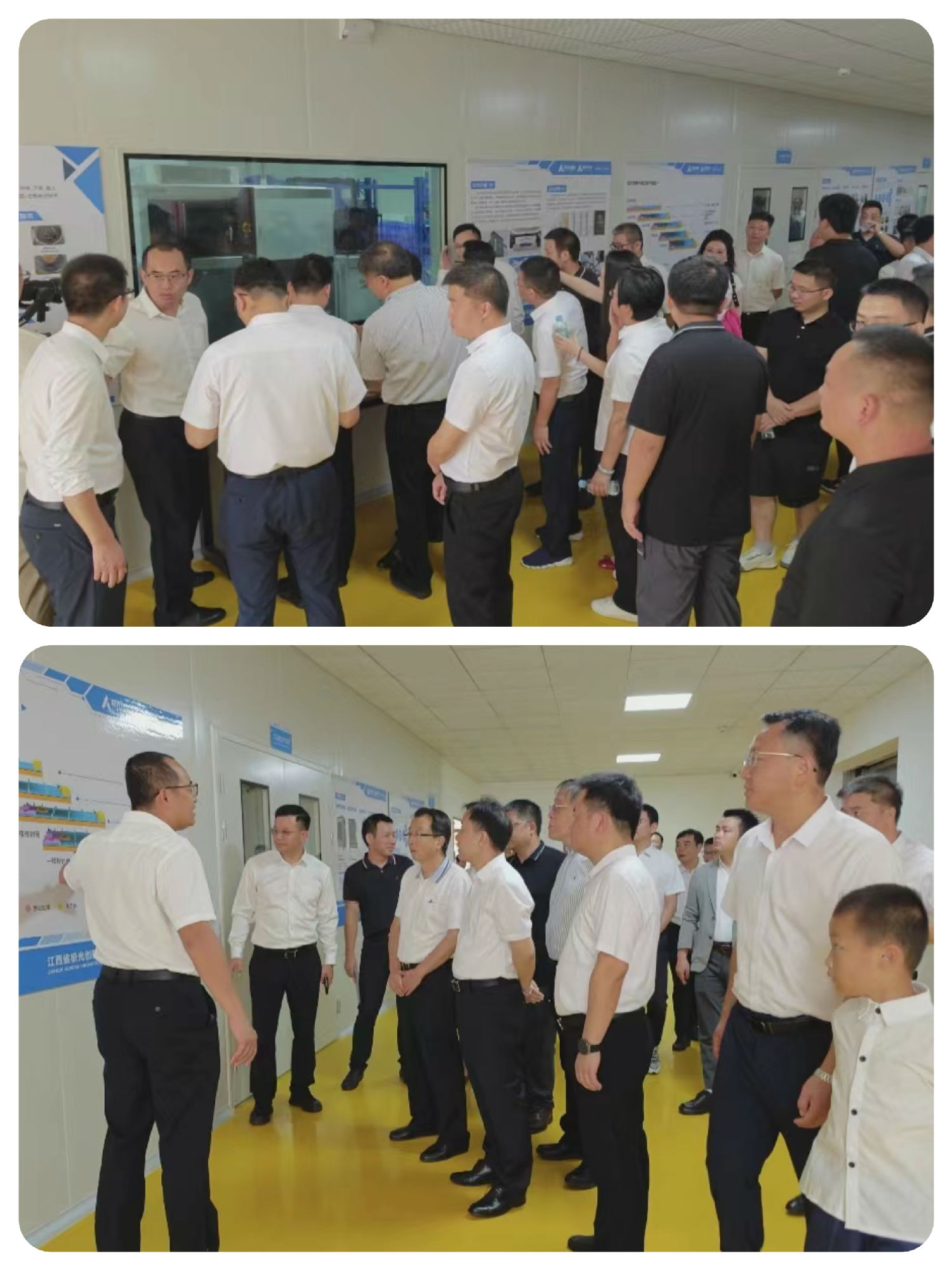 投產(chǎn)揭牌儀式后,與會(huì)人員還來(lái)到了江西省極光創(chuàng)新有限公司生產(chǎn)基地參觀了極光創(chuàng)新全新升級(jí)千級(jí)無(wú)塵車間和智能生產(chǎn)線,深入了解了生產(chǎn)線的先進(jìn)設(shè)備、智能操作和創(chuàng)新技術(shù),近距離體驗(yàn)到了高效、智能的產(chǎn)品理念和科技創(chuàng)造的魅力。
