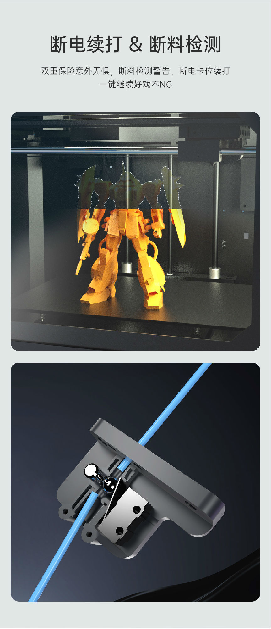 雙齒輪減速扭力更強(qiáng),高精度傳感器多點全自動檢測,打印自動輔助補(bǔ)償,賦予3D打印機(jī)更強(qiáng)勁動力,運行流暢不卡頓