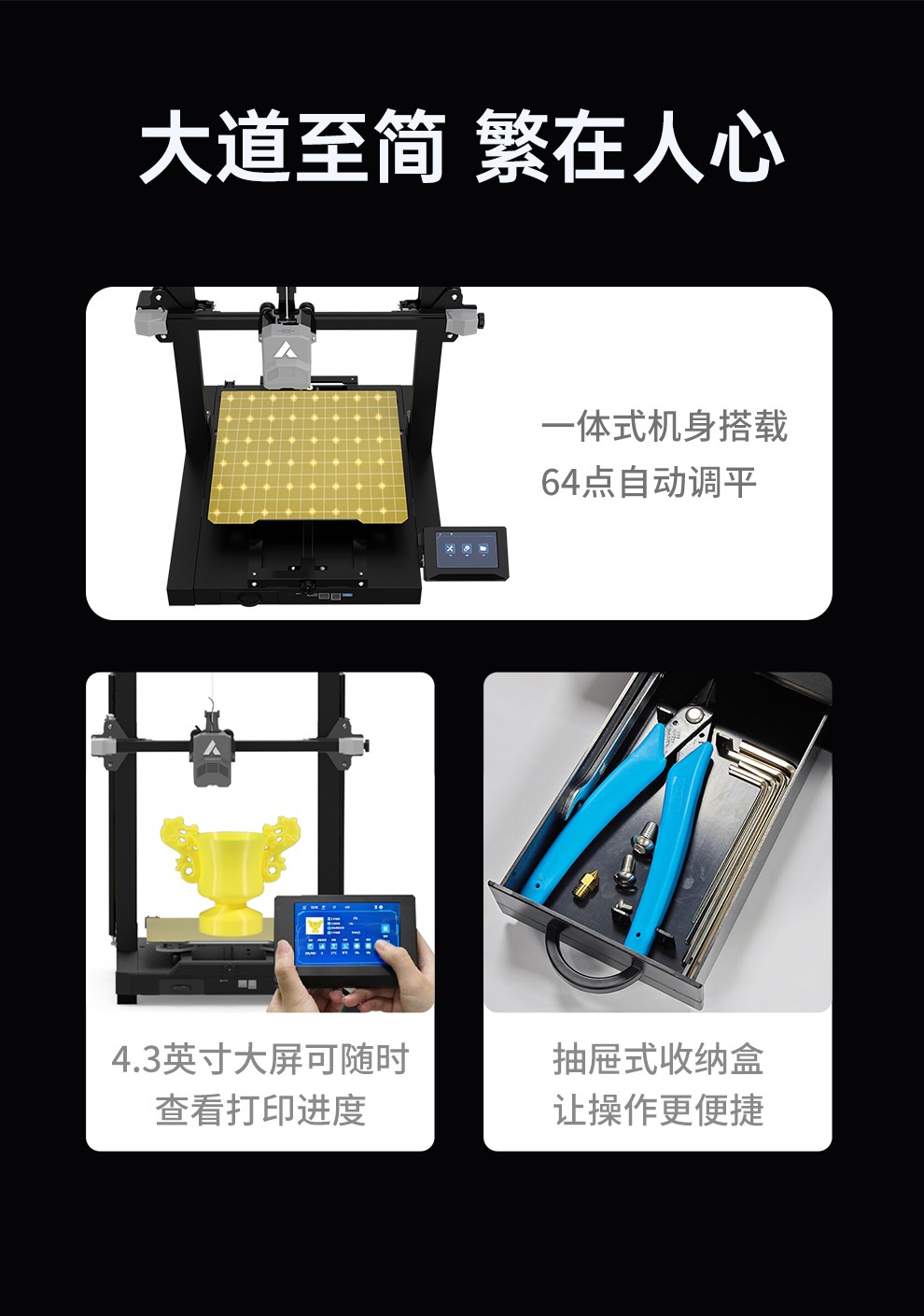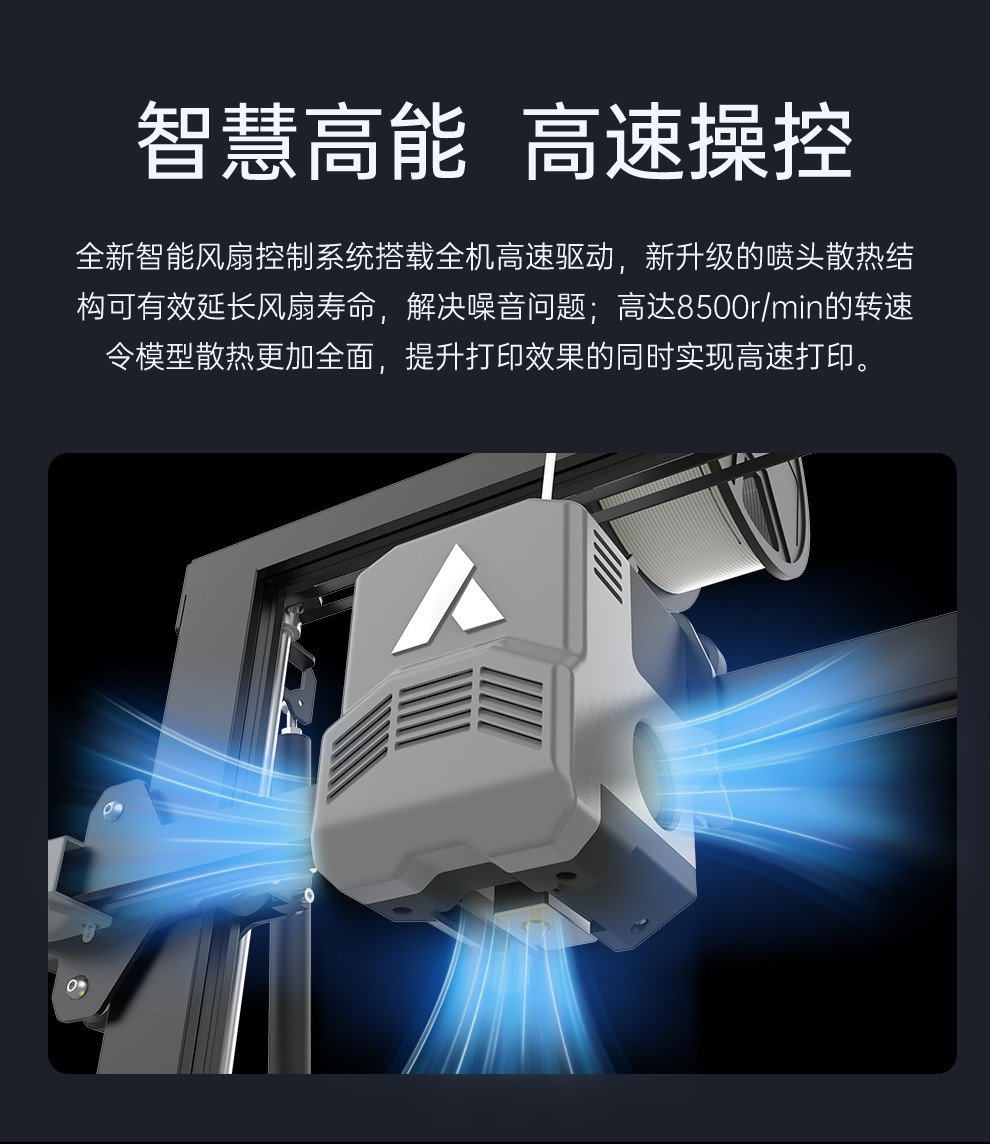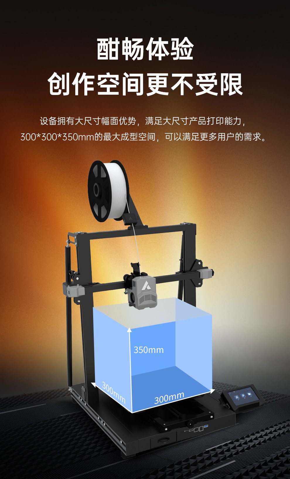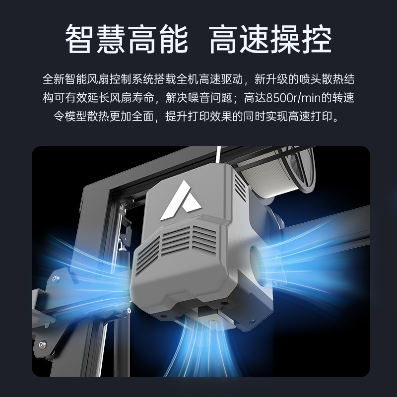 300*300*350mm最大成型空間·9.5倍放大擠出,使出料更均勻,成型更出色,搭載智能風(fēng)扇控制系統(tǒng),讓高達(dá)8500r/min的轉(zhuǎn)速降低噪音,還可以模型散熱更全面的同時高速打印