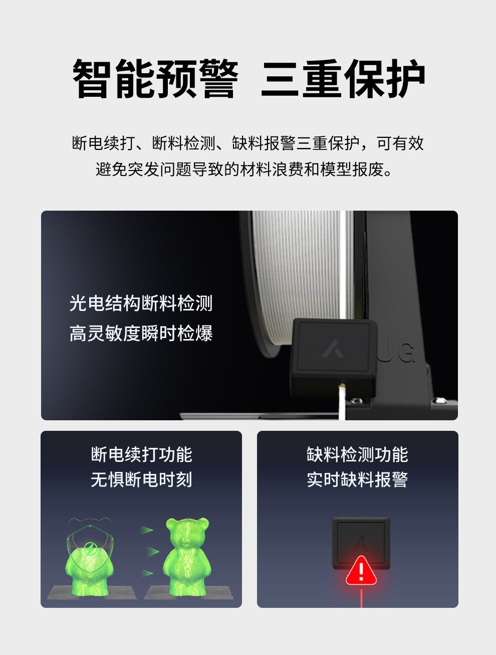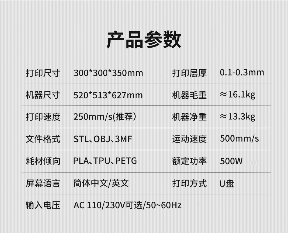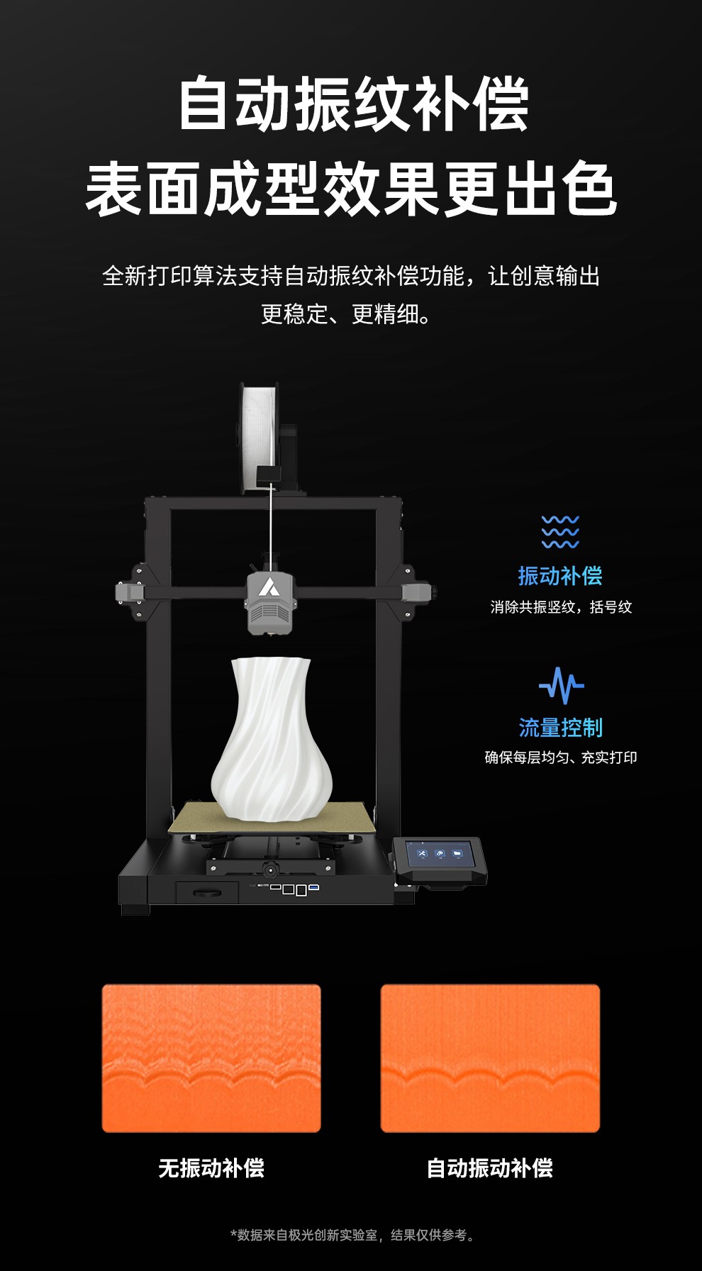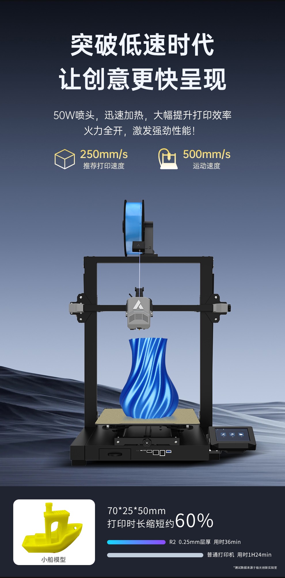 300*300*350mm最大成型空間·9.5倍放大擠出,使出料更均勻,成型更出色,搭載智能風(fēng)扇控制系統(tǒng),讓高達(dá)8500r/min的轉(zhuǎn)速降低噪音,還可以模型散熱更全面的同時高速打印