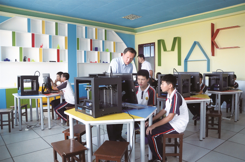 目前,“3D飛天創(chuàng)客空間”正式建成并投入使用。學(xué)生通過專業(yè)的中小學(xué)建模軟件,自己動手設(shè)計3D模型,運用3D打印機打印出茶杯、筆筒等實物,讓學(xué)生的想象變?yōu)楝F(xiàn)實。此外,在歷史、生物、地理、化學(xué)、物理等課程的教學(xué)中,輔助教具都可以通過3D打印制作出來,將抽象、難懂的教學(xué)變得直觀形象化,更好地激發(fā)學(xué)生的學(xué)習(xí)興趣。
