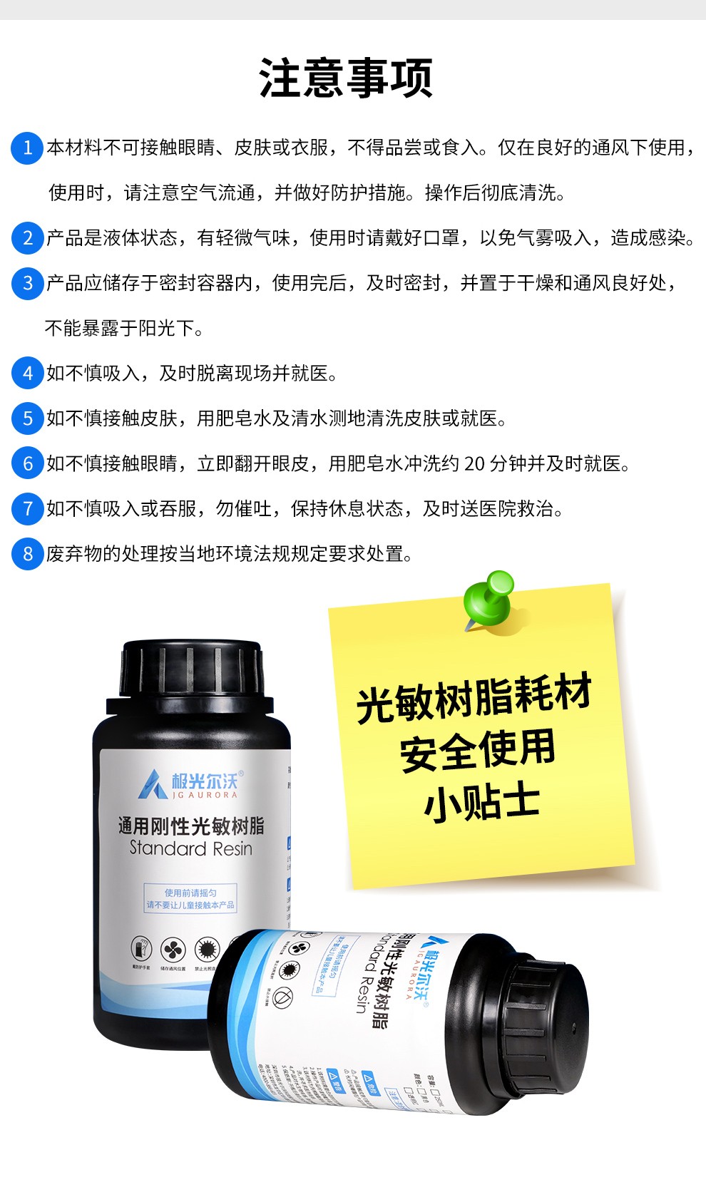 通用剛性樹脂耗材,高精細(xì)度表面光滑細(xì)膩,收縮率低、高韌性,誤差更小,高硬度、耐高溫,固化速度更快更穩(wěn)定,兼容市面上的LCD 3D打印機(jī)
