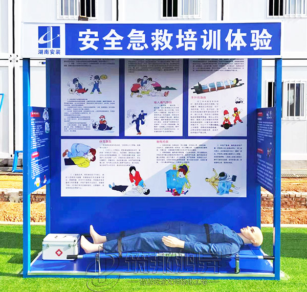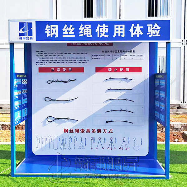 此次合作的安全教育培訓體驗區(qū)建設包括了班前講評臺、鋼絲繩使用體驗、安全防護用品展示體驗、綜合用電體驗、安全帶使用體驗、安全急救培訓體驗、移動式平臺體驗、洞口墜落體驗、消防器材柜、安全帽撞擊體驗等。標準款采用鋼結構組裝式設計,高溫烤漆不易褪色,顏色鮮艷更美觀,設計制作安裝全包。筑邦安排專車送貨到衡陽工地,同時安排了專業(yè)人手迅速到工地加班加點完成安裝。