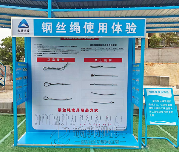 此次合作的工地安全體驗(yàn)館建設(shè)包括了鋼絲繩使用體驗(yàn)、綜合用電演示體驗(yàn)、滅火器演示體驗(yàn)、平衡木體驗(yàn)、安全防護(hù)用品展示體驗(yàn)、安全帽撞擊體驗(yàn)等。